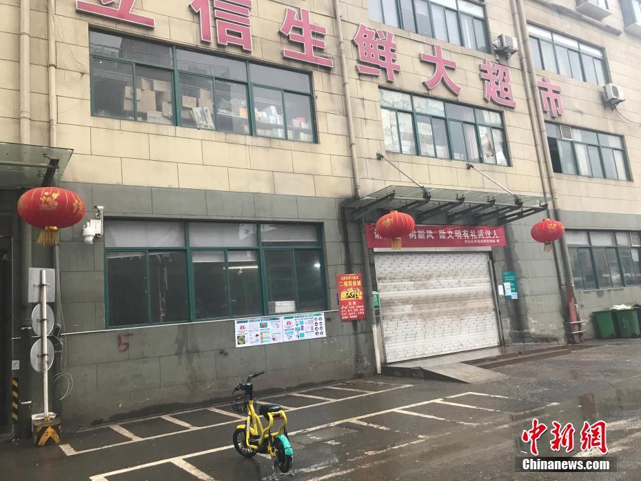 位于武汉市洪山区雄楚大道上的一家生鲜市场闭门停业。中新社记者 裴春梅 摄