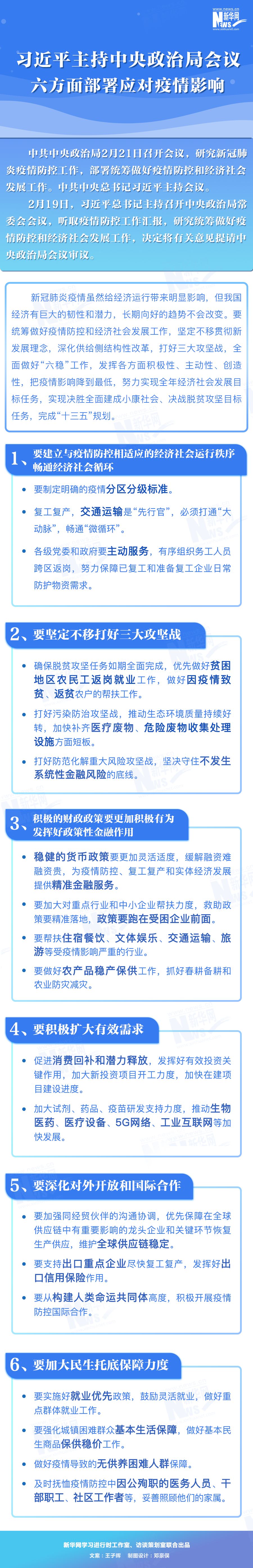 习近平主持中央政治局会议 六方面部署应对疫情影响