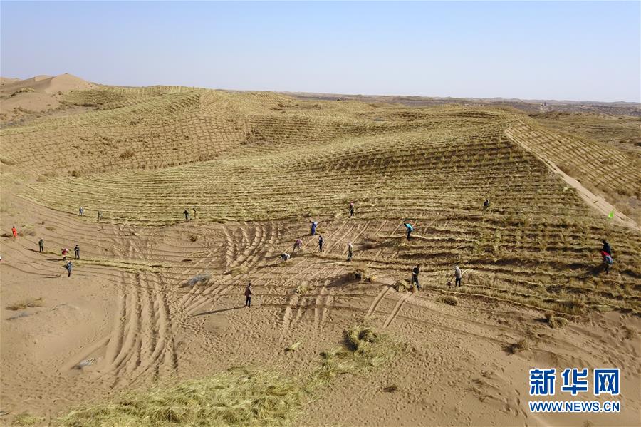 八步沙治沙人春季压沙造林忙