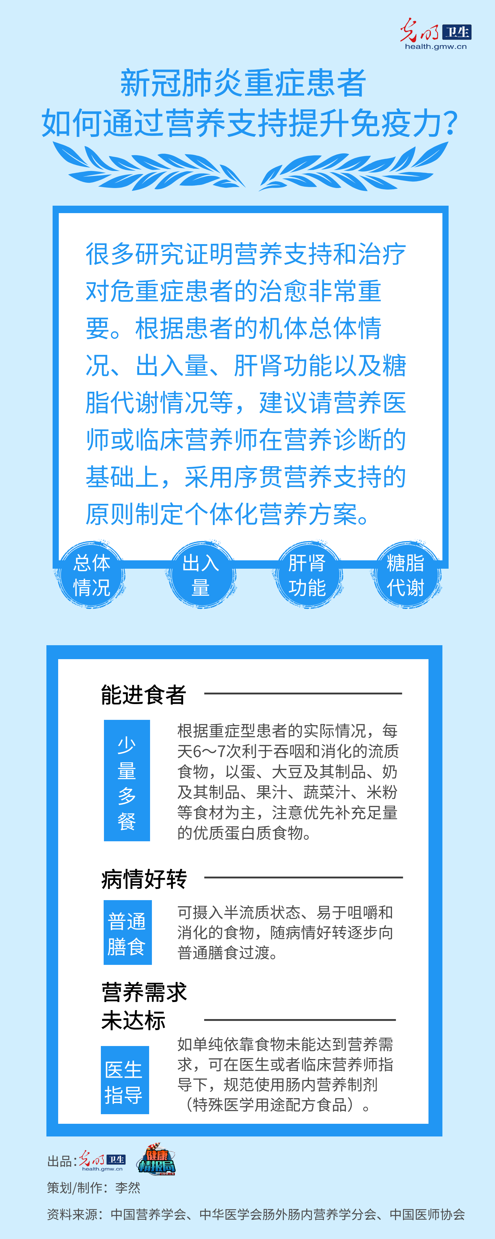 【一图读懂】新冠肺炎重症患者如何通过营养支持提升免疫力