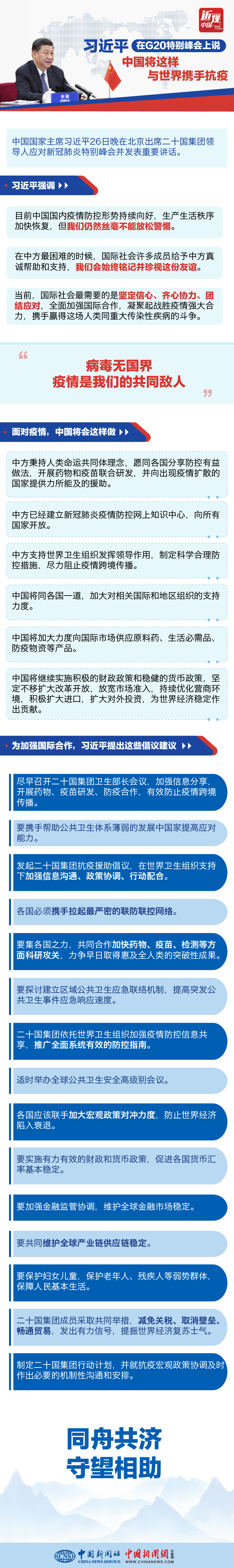 习近平在G20特别峰会上说,中国将这样与世界携手抗疫