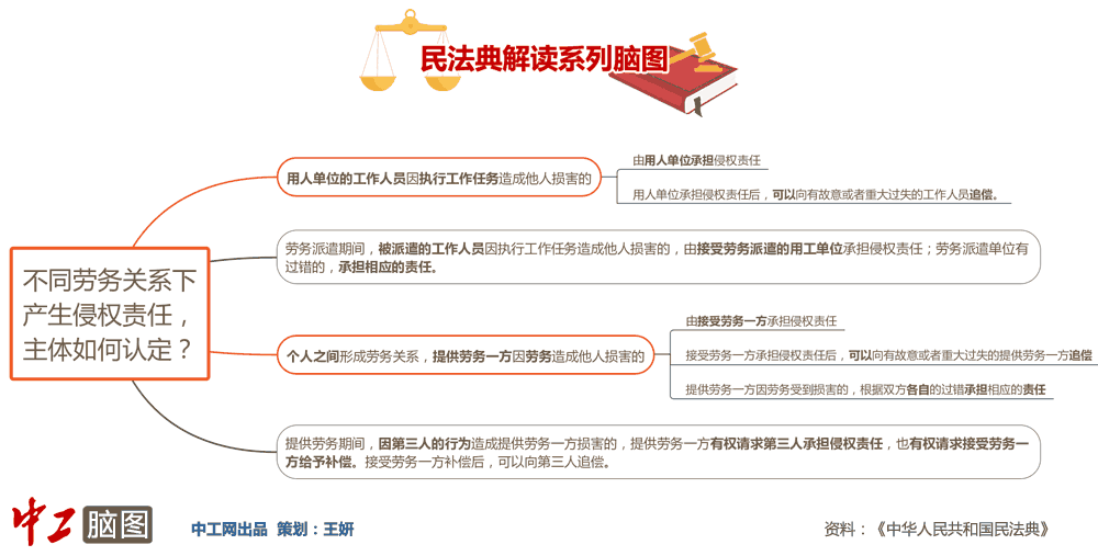 [中工脑图]民法典解读·不同劳务关系下产生侵权责任,主体如何认定