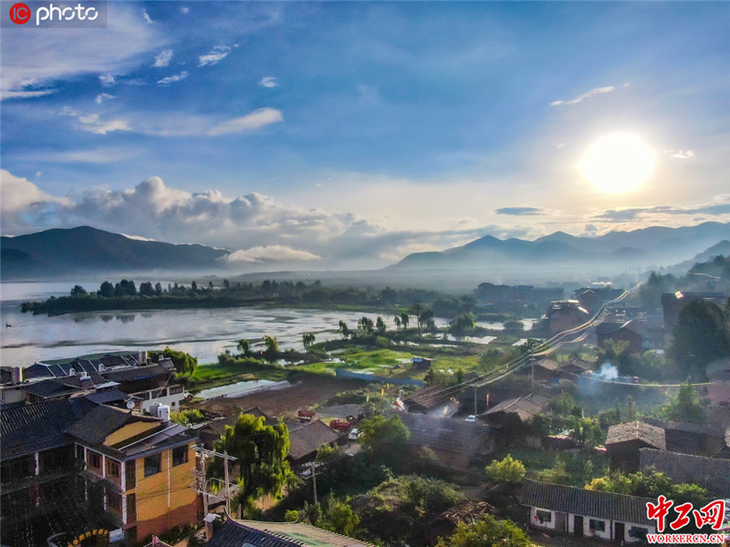 云南泸沽湖清晨 薄雾弥漫宛如仙境