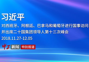国家主席习近平将于11月27日至12月5日对西班牙、阿根廷、巴拿马和葡萄牙进行国事访问并出席二十国集团领导人第十三次峰会。