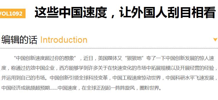 “中国创新速度超过你的想象”,近日,美国媒体又“狠狠地”夸了一下中国创新发展的惊人速度。