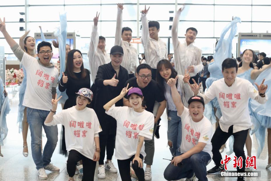 5月20日,近百名单身男女齐聚南京禄口机场,参加主题为“因为爱情”的相爱快闪,随后与江苏卫视主持人孟非、江苏交通广播主持人磊磊和娜娜一起乘上地铁列车,来了一场车厢内的珍爱相亲会。当日,因5月20日谐音“我爱你”,各地纷纷举办各种相亲活动。图为年轻人、主持人、舞蹈演员一起参与“因为爱情”舞蹈快闪。 泱波 摄