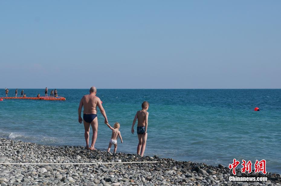 俄罗斯黑海海滨城市索契因举办过2014年冬奥会与2018年世界杯足球赛而被更多世人了解与关注。2018俄罗斯世界杯足球赛期间,当地民众与世界各地的游客在这里尽情享受黑海阳光,看世界杯足球赛。 中新社记者 毛建军 摄