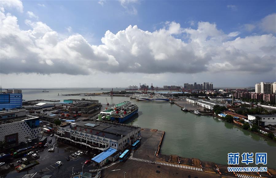 7月17日,几艘客滚轮在海口港停靠。 新华社记者 郭程摄