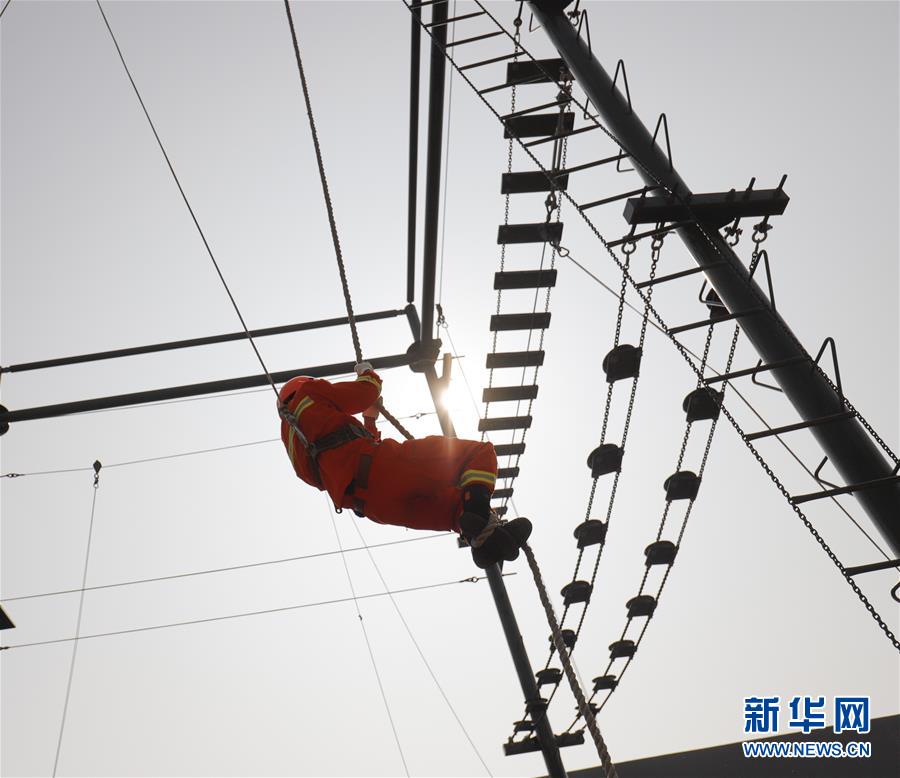 河北省遵化市消防中队一名消防员进行体能训练(8月3日摄)。 新华社发(刘满仓 摄)