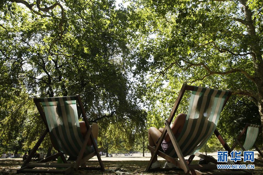 8月3日,在英国伦敦圣詹姆斯公园,人们坐在树荫下乘凉。 新华社发(蒂姆·爱尔兰摄)