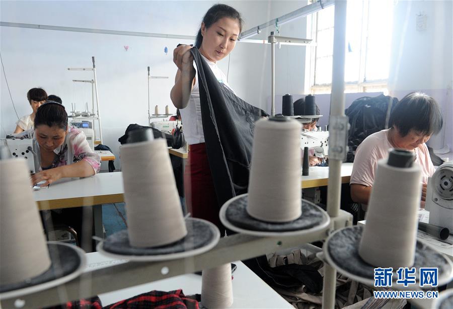 8月4日,在山东省滨州市沾化区泊头镇冯王村奥杰家纺车间,缝纫技术人才李静在检查产品质量。 近年来,泊头镇大力支持获得专业技术资格的人才回乡创业,设立技术人才创业专项基金,鼓励他们吸纳当地贫困群众,传授技术、提供就业岗位,带动当地群众脱贫致富。 新华社发(刘玉和 摄)
