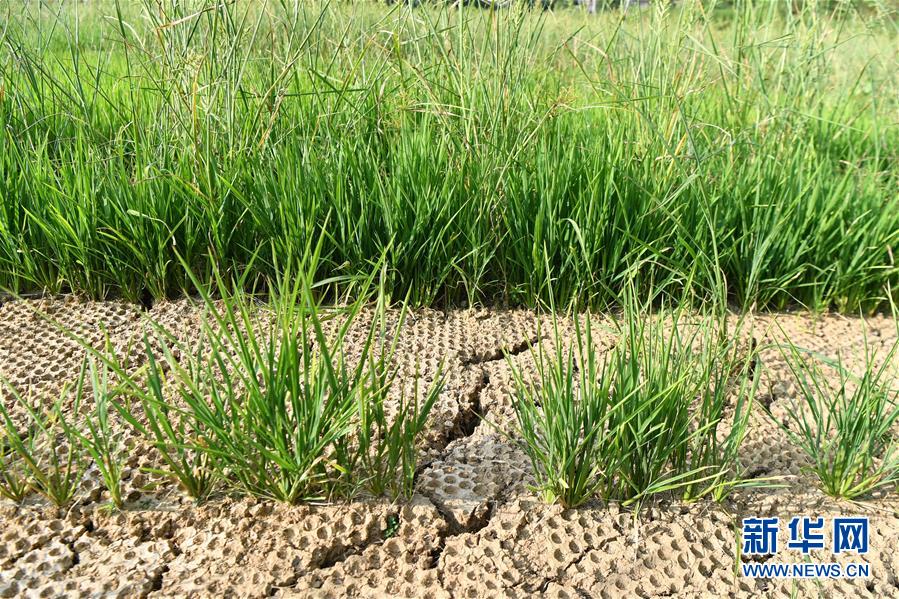 这是8月13日拍摄的湖南省湘乡市龙洞镇石头村龟裂的田地。 记者从湖南省防汛抗旱指挥部办公室了解到,截至13日,湖南省已有201万亩农作物受旱,因旱出现饮水困难的群众达2.5万人。 新华社发(薛宇舸 摄)