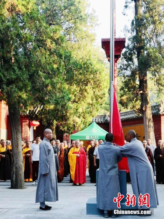 《关于在宗教活动场所升挂国旗的倡议》发出后,少林寺率先表态,要不断增强尊重国旗、爱护国旗、维护国旗的尊严意识。图为升旗仪式现场。 邹相 摄