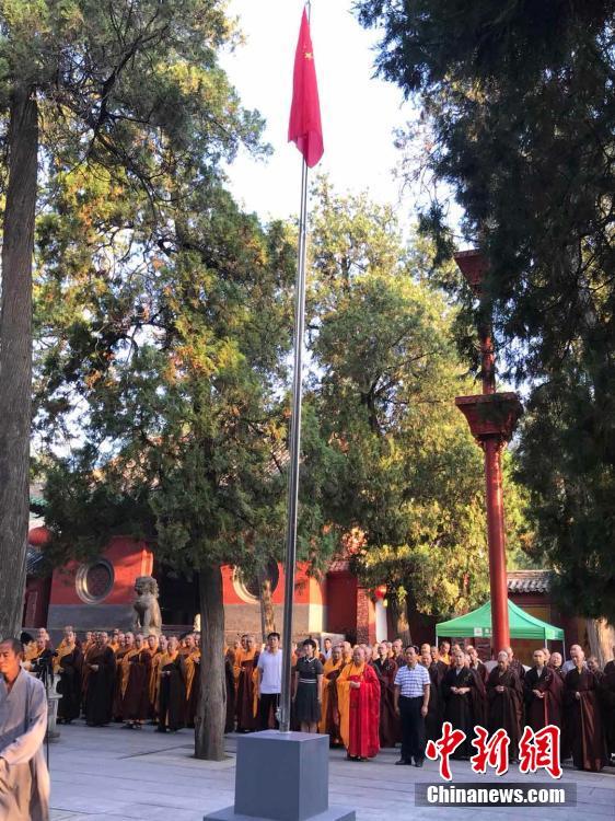 鲜艳的五星红旗在嵩山少林寺山门前广场升起。 邹相 摄