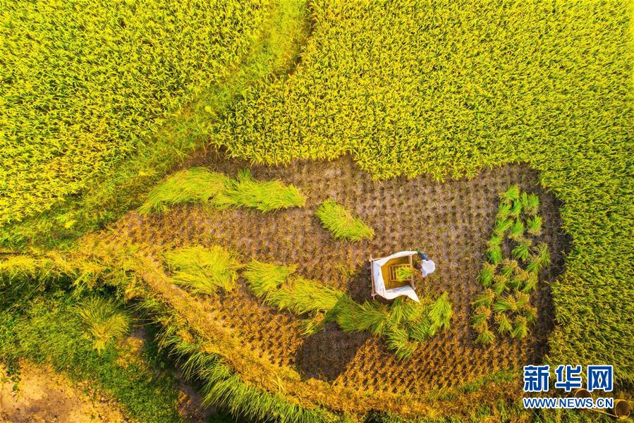 秋风送爽,贵州、湖南、重庆等地山乡稻田泛黄、田野铺金,美丽的秋收画卷展现在人们眼前。 新华社发(陈星宇 摄)