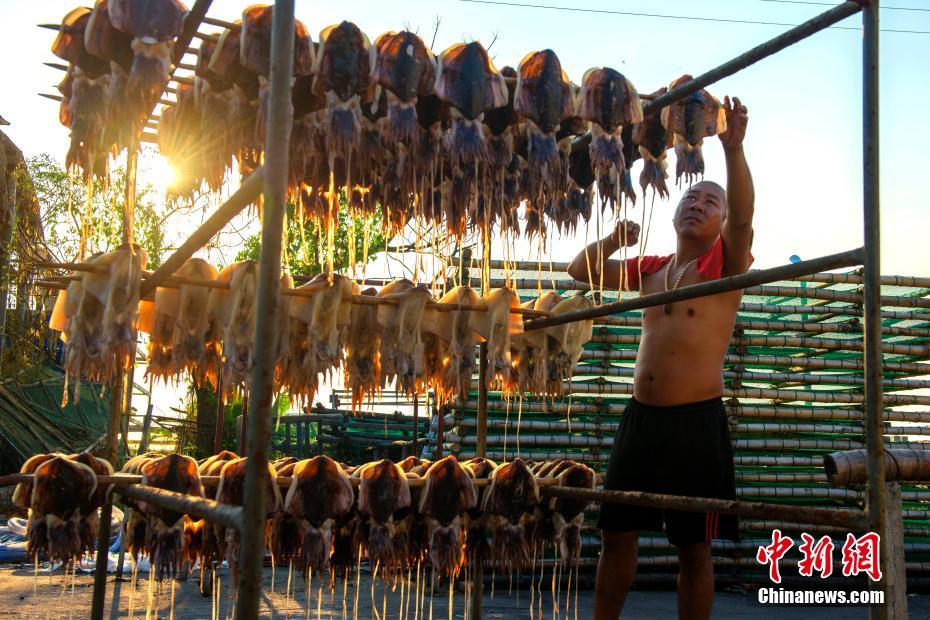 9月23日,广西北海市的渔民趁着艳阳天晾晒海鱼。每年的9月22日或23日是农历二十四节气中的秋分,南方的气候由这一节气起入秋。连日来,广西北海艳阳高照,正是晒鱼的好时节,当地地角镇渔民在晒渔场里忙得不亦乐乎。地角曾是北海的一个小渔村,疍家渔民的主要聚居地,世代以渔为生,现在发展成为广西北部湾畔的渔业重镇。 徐绍荣 摄