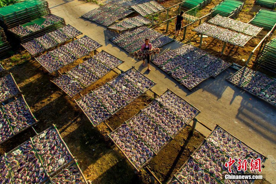 入秋暖阳天 广西北海疍家渔民晒鱼忙