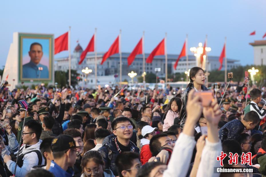 10月1日是中华人民共和国成立69周年纪念日。清晨,来自中国各地的近11万民众特意来到天安门广场观看升旗仪式并唱响国歌,为祖国母亲庆祝生日。中新社记者 盛佳鹏 摄