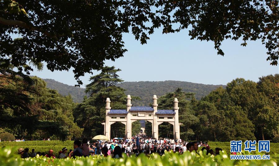 游客在南京中山陵景区参观游览(10月4日摄)。