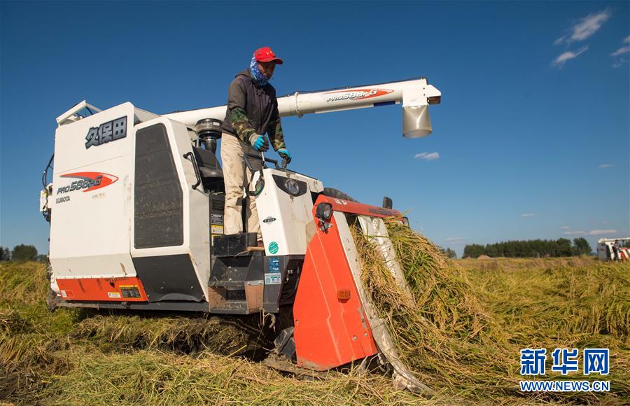 在吉林省吉林市一拉溪镇,农民驾驶收割机收割水稻(9月17日摄)。 金秋十月,位于“黄金水稻带”的吉林省喜迎丰收,全省1200多万亩水稻陆续开镰。 记者在吉林省水稻主产区走访发现,连年丰收的喜人图景背后,蕴藏着许多引人瞩目的“时代之变”。 新华社记者 许畅 摄