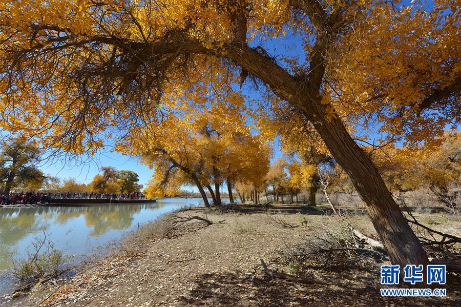 这是在内蒙古自治区额济纳旗拍摄的胡杨林(10月10日摄)。 金秋时节,内蒙古自治区额济纳旗胡杨林如同披上金装,成为大漠中的一抹亮色,吸引众多中外游客前来观赏游玩。 新华社记者邹予摄