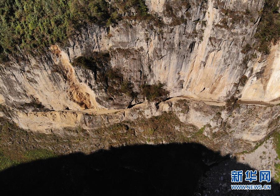 11月8日拍摄的石板河村悬崖上的通村公路(无人机拍摄)。 新华社发(韩贤普 摄)