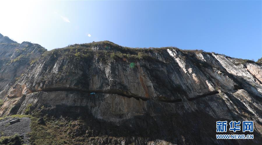 11月8日,车辆行驶在石板河村悬崖上的通村公路上。 新华社发(韩贤普 摄)