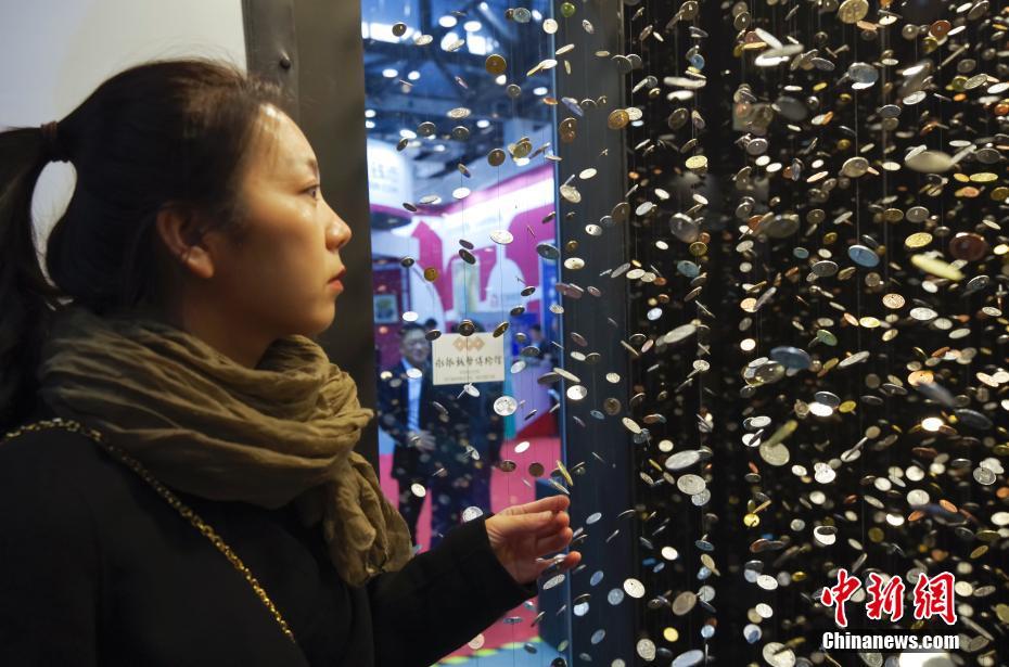 11月9日,第23届北京国际钱币博览会在北京国家会议中心开幕。图为一展商用数千枚外国硬币制作的硬币墙吸引观众。中新社记者 贾天勇 摄