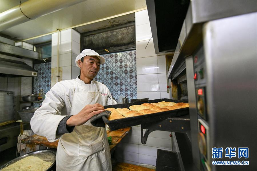 12月18日,“更新饭店”工作人员烤制烧饼。 新华社记者 王松 摄