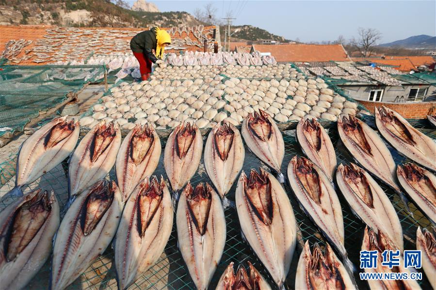寒冬时节,山东省青岛市即墨区沿海一带的渔民抓住晴天低温的大好时机,忙着将捕获的海鱼腌制、晾晒,成为冬日渔家一道靓丽的风景。