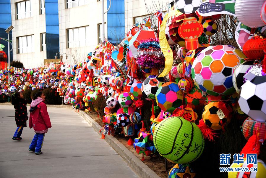12月29日,在陕西省延安市实验小学“灯笼展 迎新年”校园文化活动上,学生欣赏各种造型的灯笼。 新年临近,人们以各种各样的方式迎接新年,表达对新年的祝福。 新华社发(王福建 摄)