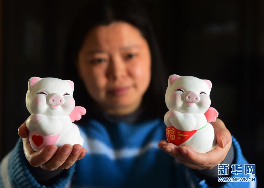12月29日,江苏无锡的民间艺人徐旦在展示贺岁惠山泥人工艺品。 新年临近,人们以各种各样的方式迎接新年,表达对新年的祝福。 新华社发(还月亮 摄)