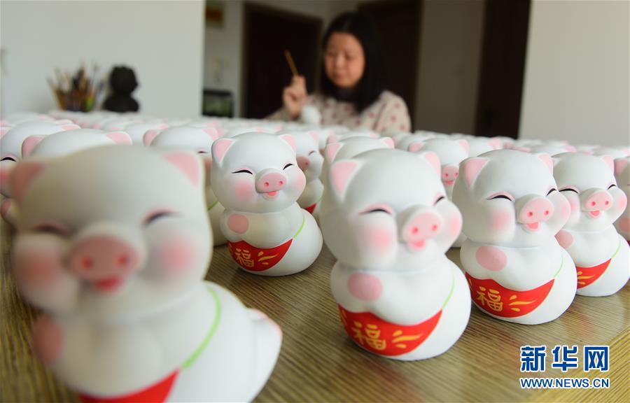 12月29日,江苏无锡的民间艺人徐旦为贺岁惠山泥人工艺品上色。 新年临近,人们以各种各样的方式迎接新年,表达对新年的祝福。 新华社发(还月亮 摄)