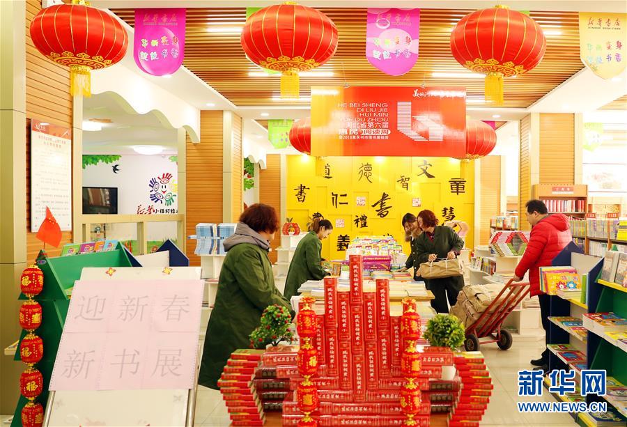 12月29日,在河北石家庄井陉县新华书店,工作人员在布置新年新书展览。 新年临近,人们以各种各样的方式迎接新年,表达对新年的祝福。 新华社发(张秀科 摄)
