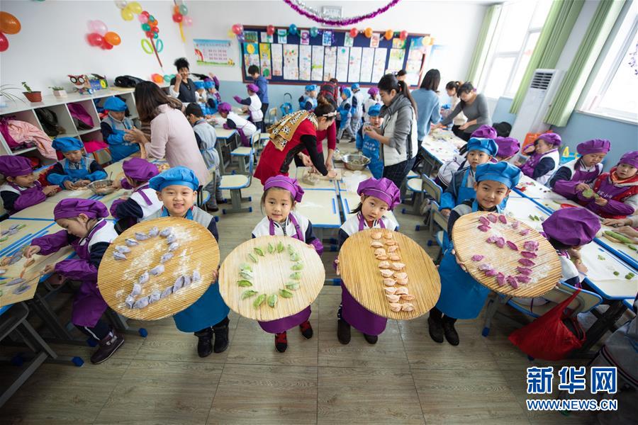 12月29日,在山东省烟台市刘家小学,小学生用饺子组成“2019”字样,迎接2019年的到来。 新年临近,人们以各种各样的方式迎接新年,表达对新年的祝福。 新华社发(初阳 摄)