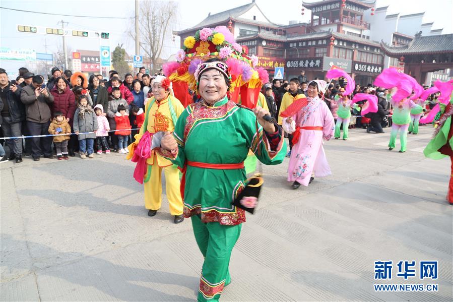 2月5日,民俗表演队在江苏省连云港市赣榆老街表演民俗节目。新华社发(邵世新 摄)