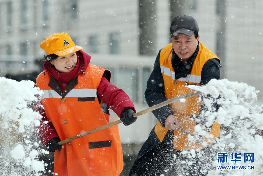 2月10日,郑州火车站职工在站台清理积雪。 当日,河南多地降下中到大雪,给旅客出行带来不便。中国铁路郑州局集团有限公司组织干部职工昼夜坚守,深入一线扫雪除冰、巡视、检查维修设备,确保旅客安全顺利出行。 新华社发(祝庆 摄)