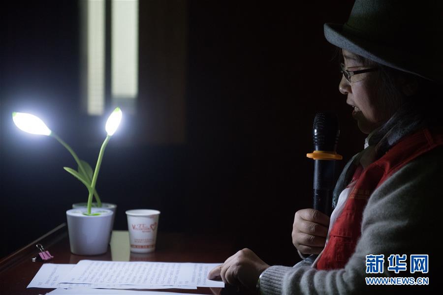 65岁的桐庐老人吴素环是一名无障碍电影解说志愿者,自2015年起已为当地视力障碍者解说了四部电影,每部电影上万字的解说词都由她自己写成,从最初的手写到用电脑写稿,她依然保持着“首映”前看二三十遍电影、一遍遍修改解说稿的习惯。 放映厅里光芒四射的吴素环其实是一名进行性肌萎缩症患者,生活全靠相濡以沫四十载的老伴照料。很长一段时间里,她深陷于自卑和绝望,只能靠写诗和随笔排解情绪。 2015年,桐庐一个公益组织发现并开始帮扶这位老人。半年后,吴素环在他们的鼓励下成为了当地第一位无障碍电影解说人。 “感觉被人需要真的很好,从孤立的个体变成了互帮互助的群体,我希望能帮助更多的残障人士像我一样重拾对生活的热情。”吴素环说。 新华社记者翁忻旸摄