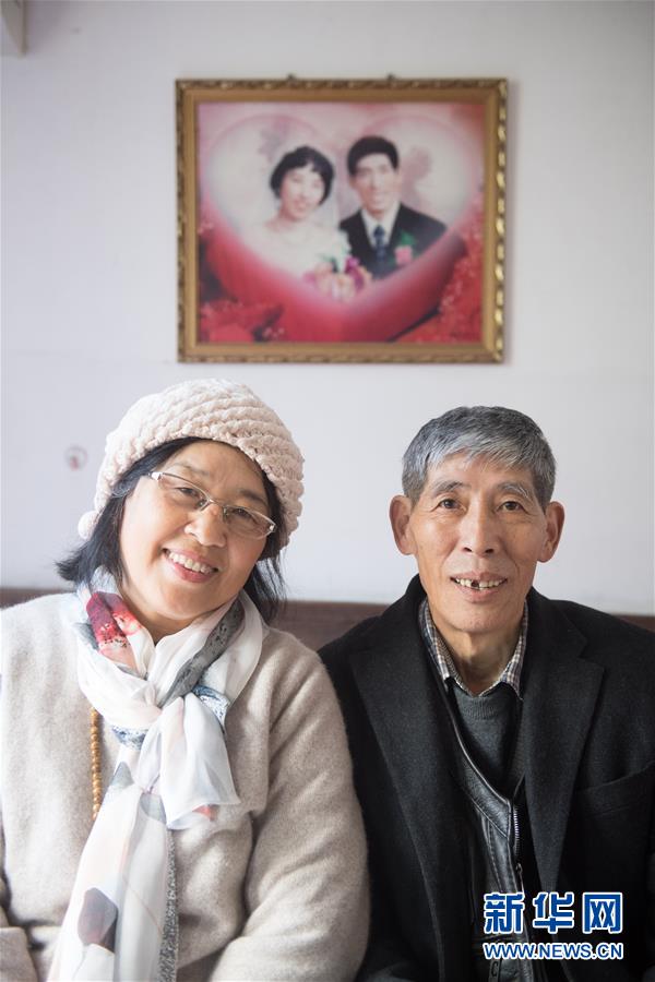 4月11日,吴素环和老伴陈洪明在位于桐庐县桐君街道的家中合影。新华社记者翁忻旸摄