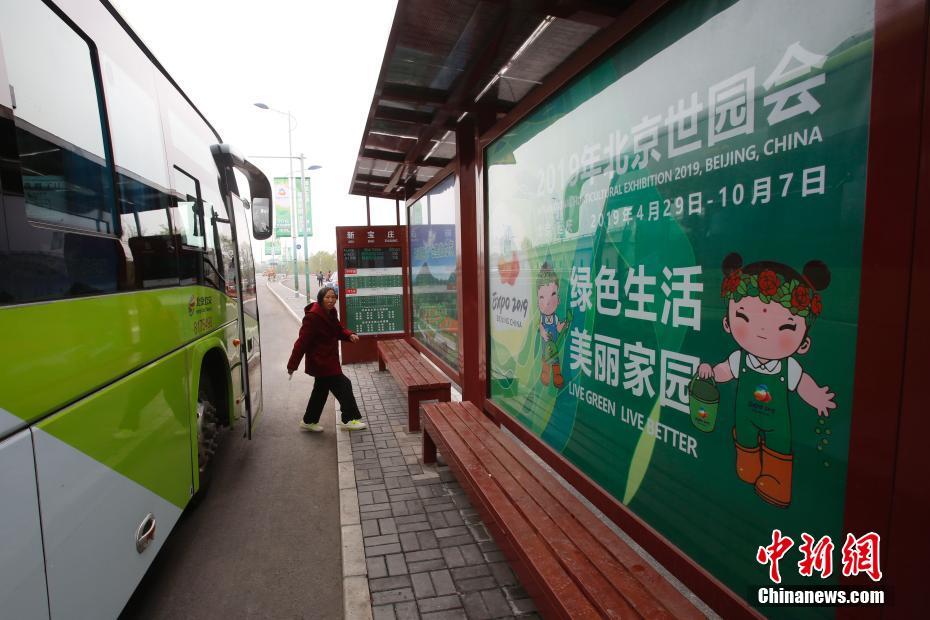 4月28日,北京世园会开幕在即,北京延庆街头世园会气氛渐浓。图为世园会元素装点延庆街头。中新社记者 韩海丹 摄