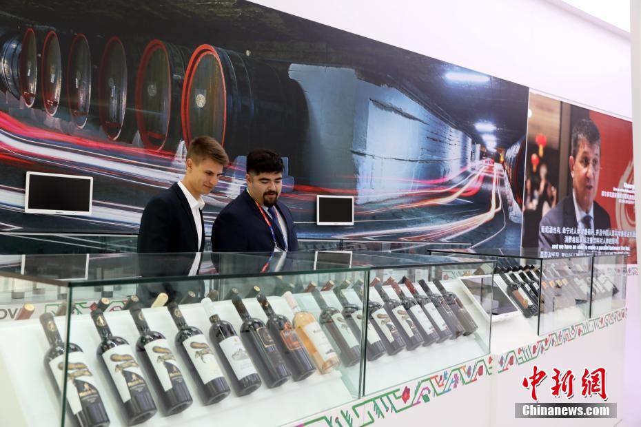 4月29日,2019年中国北京世界园艺博览会(简称北京世园会)开园,正式对公众开放。摩尔多瓦葡萄酒展台吸引参观者。中新社记者 毛建军 摄