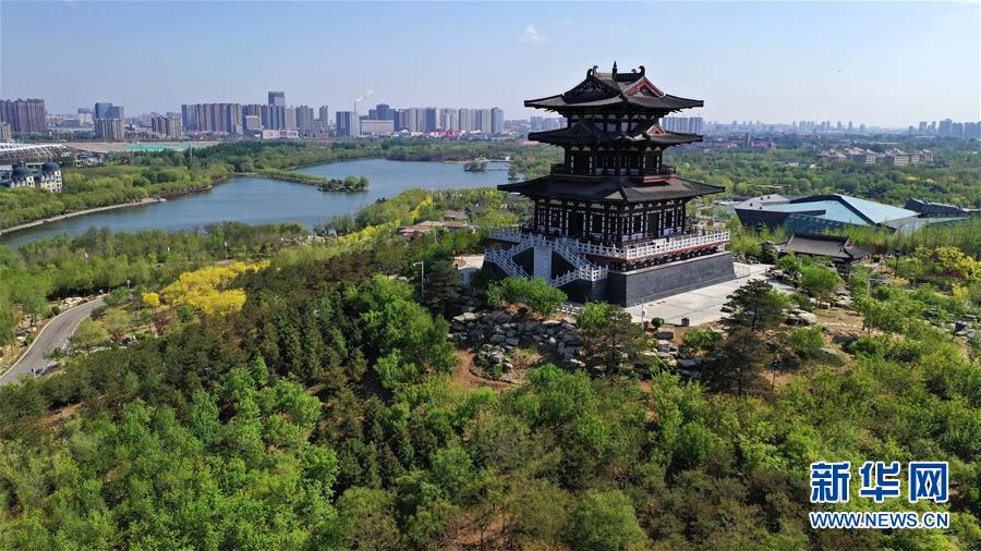 这是4月25日无人机拍摄的唐山南湖公园。 新华社记者杨世尧摄
