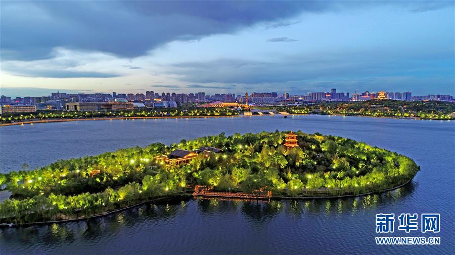 这是2018年9月30日无人机拍摄的唐山南湖公园。 新华社记者杨世尧摄