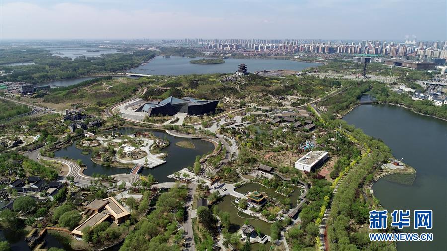 这是4月25日无人机拍摄的唐山南湖公园。 新华社记者杨世尧摄