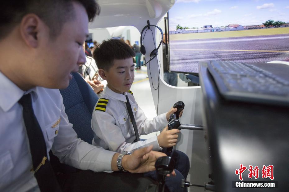 5月22日,一名学生在教练指导下体验AR飞行。当日,黑龙江省科技活动周青少年模拟飞行体验、互动活动在哈尔滨举行。小学生们来到哈尔滨莱特飞行者航空科技体验馆,变身“飞机驾驶员”体验AR(Augmented Reality,增强现实)飞行,学习航空历史、飞行知识等,感受飞行乐趣。中新社记者 吕品 摄