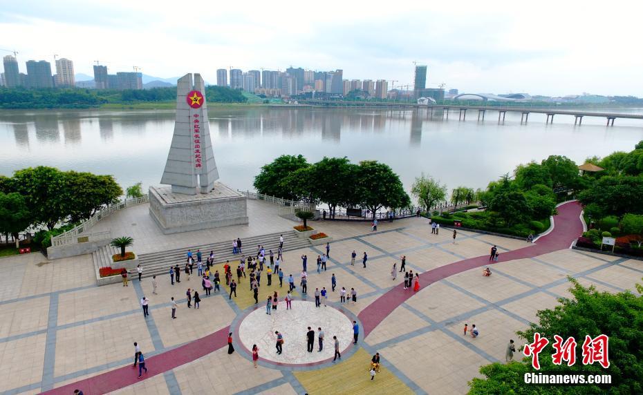 5月24日,在位于江西省赣州市于都县的中央红军长征出发地纪念园,前来参观中央红军长征出发纪念碑的民众络绎不绝。中新社记者 刘占昆 摄