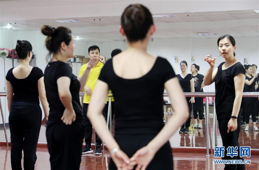 5月26日,上海戏剧学院舞蹈学院刘建强老师(左三)的指导意见通过一名听力稍好的舞蹈队员手语翻译转达给队员。 在上海闵行区古美路街道,有一个由听力障碍者组成的舞蹈团队——古美彩韵聋人舞蹈艺术队。舞蹈队现有20名队员,年龄从20岁到40岁,由上海戏剧学院舞蹈学院的老师每周一次为队员们提供训练指导。对舞蹈艺术的热爱,让这些听力障碍者走到了一起,在无声世界里舞出精彩人生。 新华社记者 方喆 摄