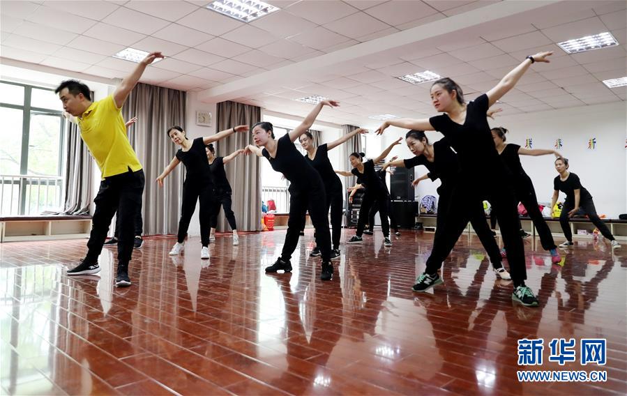 5月26日,上海戏剧学院舞蹈学院刘建强老师(左)带领队员们排练舞蹈。 在上海闵行区古美路街道,有一个由听力障碍者组成的舞蹈团队——古美彩韵聋人舞蹈艺术队。舞蹈队现有20名队员,年龄从20岁到40岁,由上海戏剧学院舞蹈学院的老师每周一次为队员们提供训练指导。对舞蹈艺术的热爱,让这些听力障碍者走到了一起,在无声世界里舞出精彩人生。 新华社记者 方喆 摄