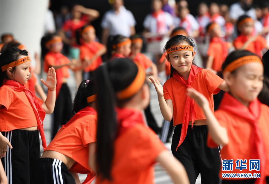 6月1日拍摄的“祖国祖国我爱你”主题快闪活动现场。新华社记者 王全超 摄