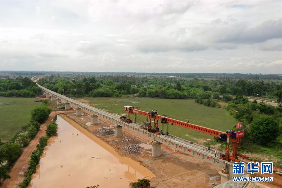 图为6月1日拍摄的楠科内河特大桥。 随着一片32米曲线T梁在老挝首都万象楠科内河特大桥两座桥墩上成功落定,中国中铁二局承建的中老铁路全线最长桥梁架梁施工1日圆满完成。 新华社发 臧衡 摄 图片来源:新华网